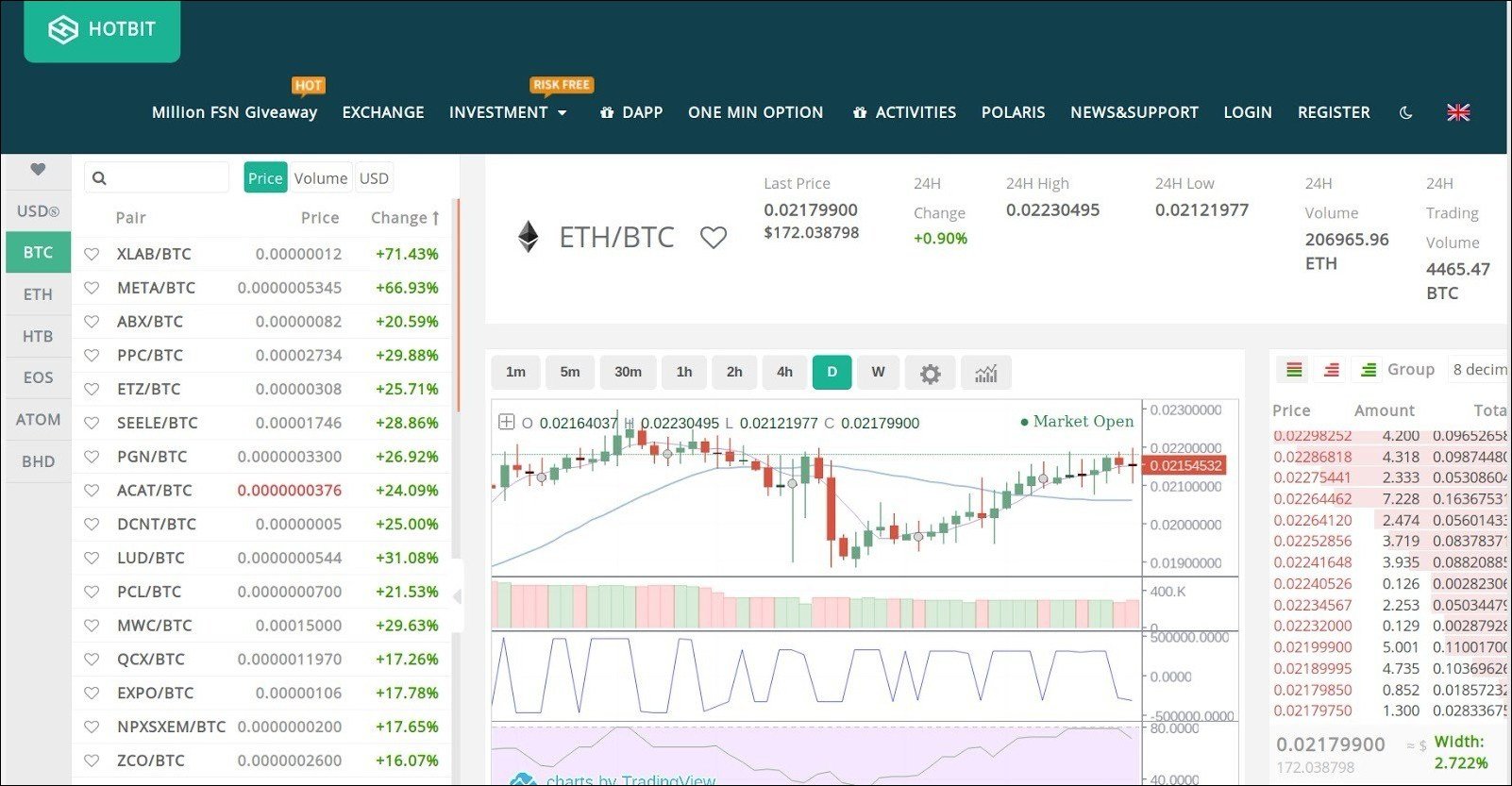 HotBit is one of the finest crypto exchanges that offer a large variety of markets and assets to trade. At the time of writing, there are 2000+ cryptocurrencies available on the exchange, making it one of the largest in the sector. Traders on Hotbit will benefit from its straightforward, yet advanced trading platform with attractive trading fees, although professionals may not use the exchange because of its low trading volume and liquidity.
