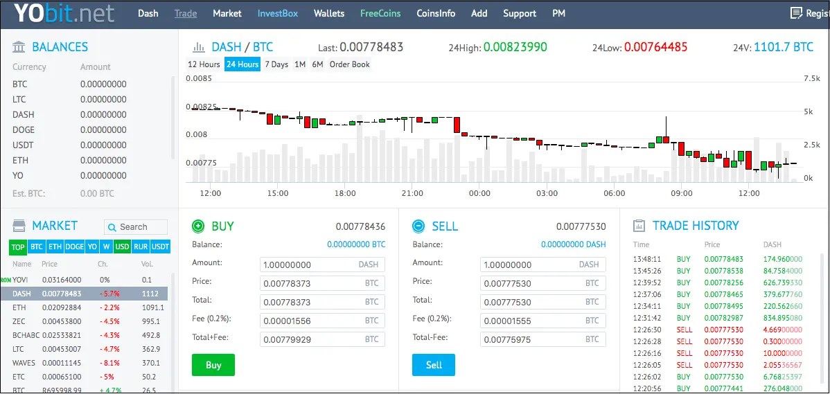 The YoBit exchange allows users to purchase and sell a variety of cryptocurrencies, as well as track the value of Bitcoin, Litecoin, Ethereum, and many other popular digital currencies; it also lists their prices. This cryptocurrency exchange allows cryptocurrency trading using US dollars and Russian Rubles. The YoBit exchange allows users to deposit fiat currency or cryptocurrencies into both dollars and rubles, and then use the exchange to buy or sell cryptocurrencies with a 0.2% transaction fee. The user is assigned complete anonymity and privacy on this exchange, due to the fact that he or she does not have to undergo AML or KYC verification.